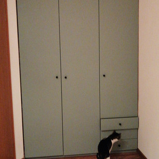 Nachdem die wichtigsten Kleidungsstücke griffbereit in der Wickelkommode liegen, war da die Frage, was ich mit dem riesigen Einbauschrank anstelle. Der ist zum Glück schon immer drin und hat nur etwas Farbe und neue (alte) Knöpfe gebraucht die vom Küchen-Makeover übrig geblieben sind, um zum richtigen Hingucker zu werden.